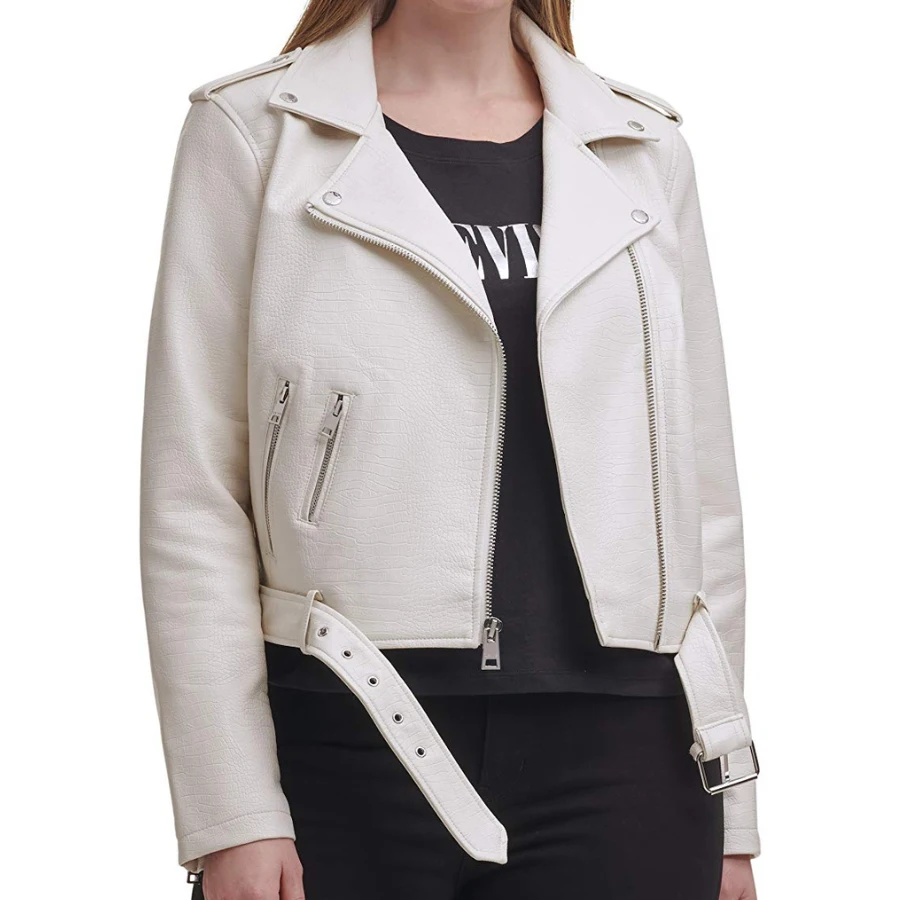 - Front: Asymmetrical Zipper Closure